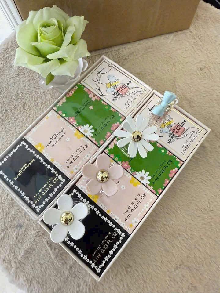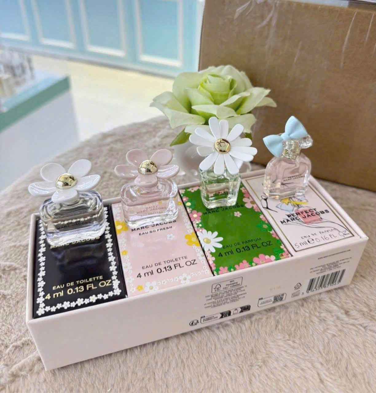 Set nước hoa mini Daisy Marc Jacob 4 chai là một giftset nước hoa mini Marc Jacobs gồm 4 chai mini (khoảng ~4 ml mỗi chai), mang đến trải nghiệm đa dạng các phiên bản thuộc dòng Daisy — biểu tượng nước hoa nữ tính, tươi sáng và trẻ trung của Marc Jacobs.