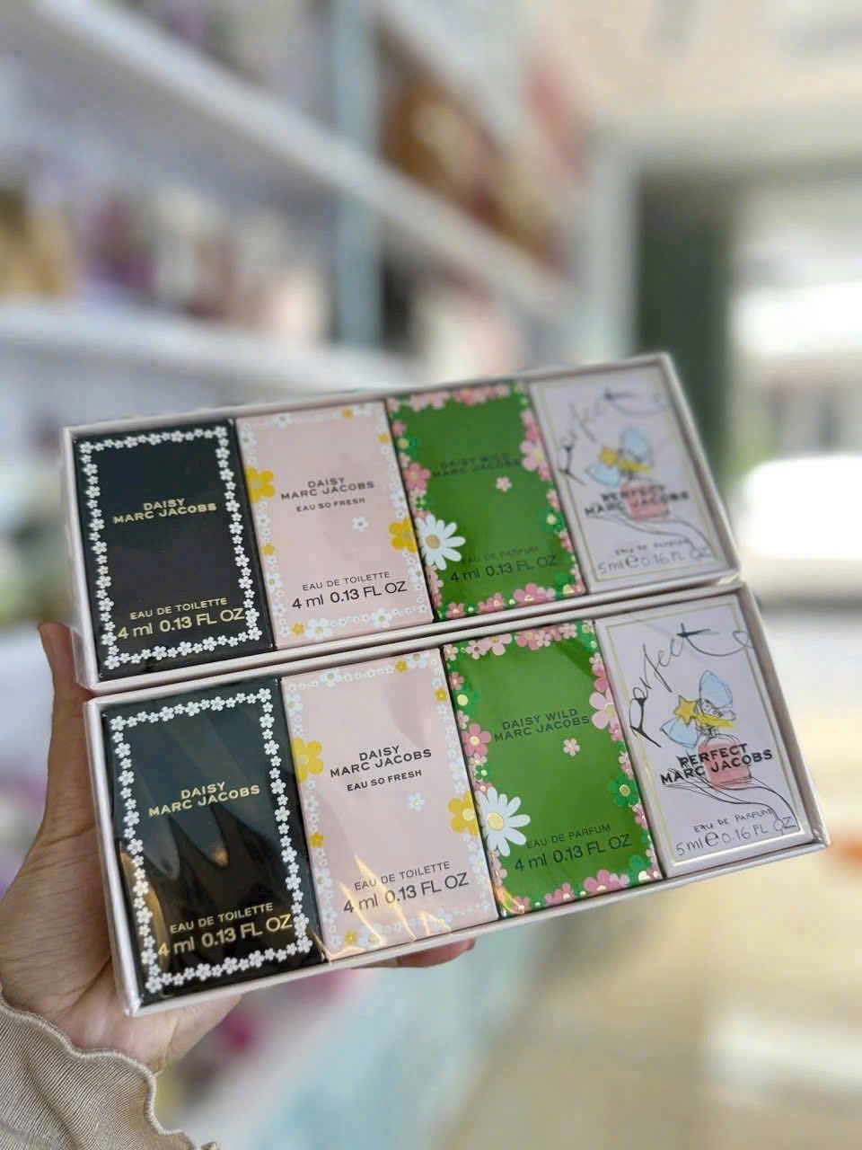 Set Set nước hoa mini Daisy Marc Jacob 4 chai là món quà nhỏ xinh, giàu giá trị trải nghiệm — đưa bạn qua nhiều sắc thái tươi mới, nữ tính và tinh tế của Marc Jacobs Daisy trong mỗi chai mini. Nếu bạn đang tìm một cách trải nghiệm đa dạng hương Marc Jacobs mà không đầu tư chai lớn, thì đây là lựa chọn rất đáng để cân nhắc.