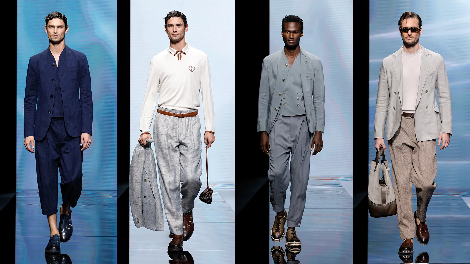 - Giorgio Armani: Dòng thời trang chính của thương hiệu, bao gồm các bộ sưu tập trang phục nam và nữ. Giorgio Armani nổi tiếng với những bộ vest nam lịch lãm và trang phục nữ mềm mại, thanh thoát.