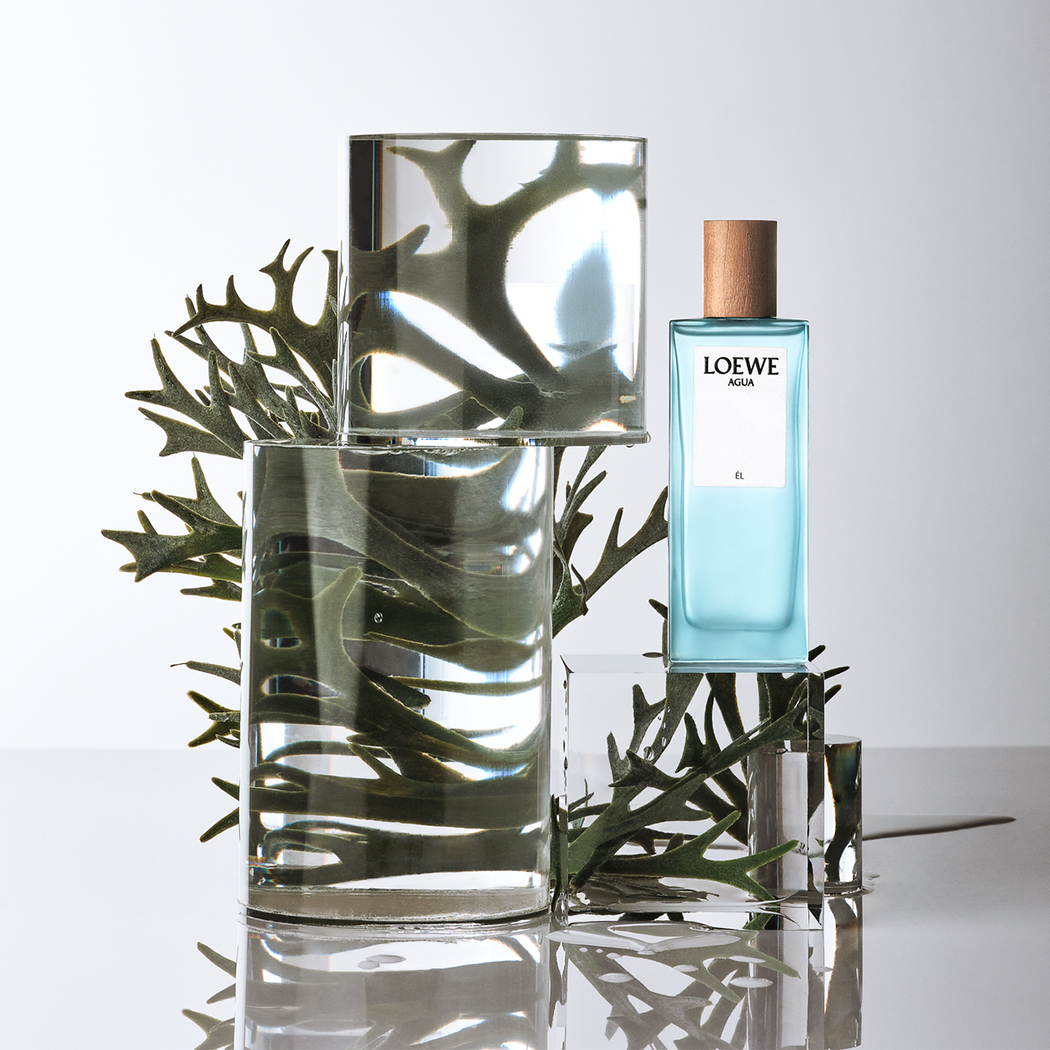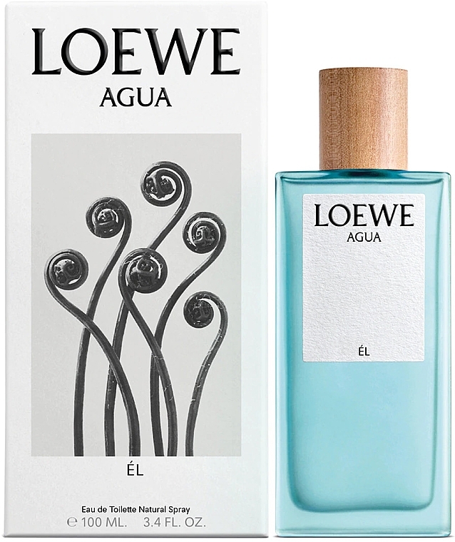 Chai nước hoa Loewe Agua Él giữ nguyên thiết kế đặc trưng của bộ sưu tập Agua: thân chai thủy tinh trong suốt, dáng trụ tròn, thanh mảnh và tối giản. Phần chất lỏng bên trong mang sắc xanh nhạt, gợi cảm giác mát lành như làn nước suối. Nắp gỗ màu tự nhiên tạo điểm nhấn mộc mạc và cao cấp, hòa quyện giữa yếu tố thiên nhiên và phong cách hiện đại, đúng với tinh thần của thương hiệu Loewe.