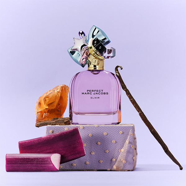 Chai nước hoa Perfect Elixir vẫn giữ nguyên hình dáng đặc trưng của dòng Perfect với chiếc nắp được trang trí bởi nhiều biểu tượng ngẫu hứng như nơ, trái tim, ngôi sao, chuối,... nhưng phiên bản này được phủ lớp hồng đỏ rực rỡ và ánh vàng sang trọng. Thiết kế thể hiện tinh thần vui tươi, phá cách và đầy tự do sáng tạo – đúng với DNA của Marc Jacobs.