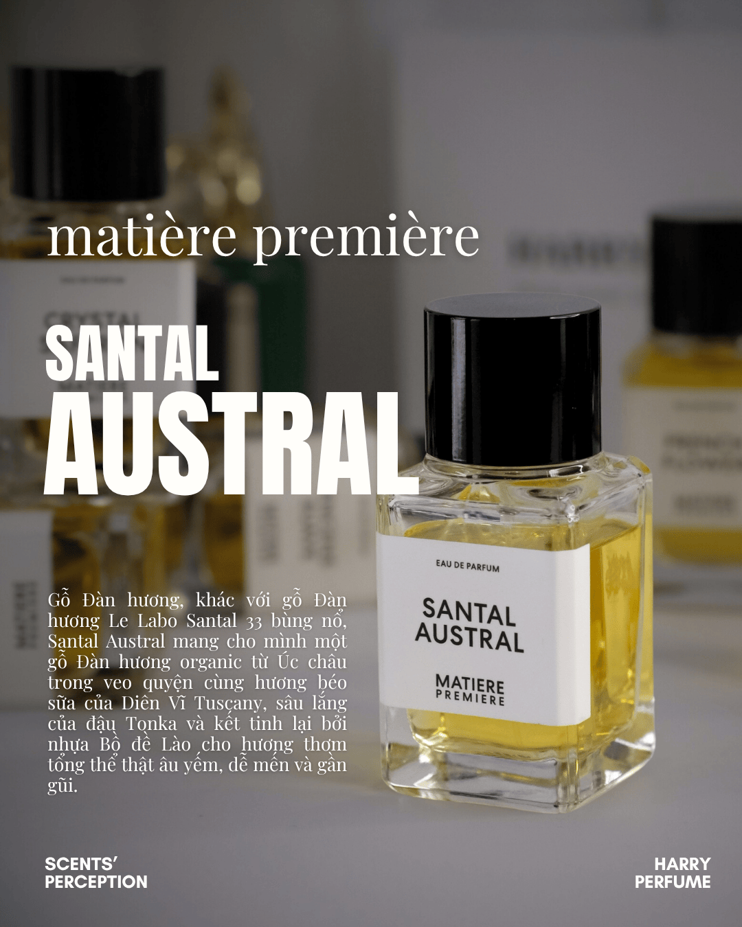 Trong cuốn tiểu thuyết bằng hương của Matiere Premiere, Santal Austral mở ra như những trang viết đầu tiên về một kẻ lãng mạn, người mang trái tim mềm mại nhưng vẫn can đảm lên đường để tìm kiếm chính mình.