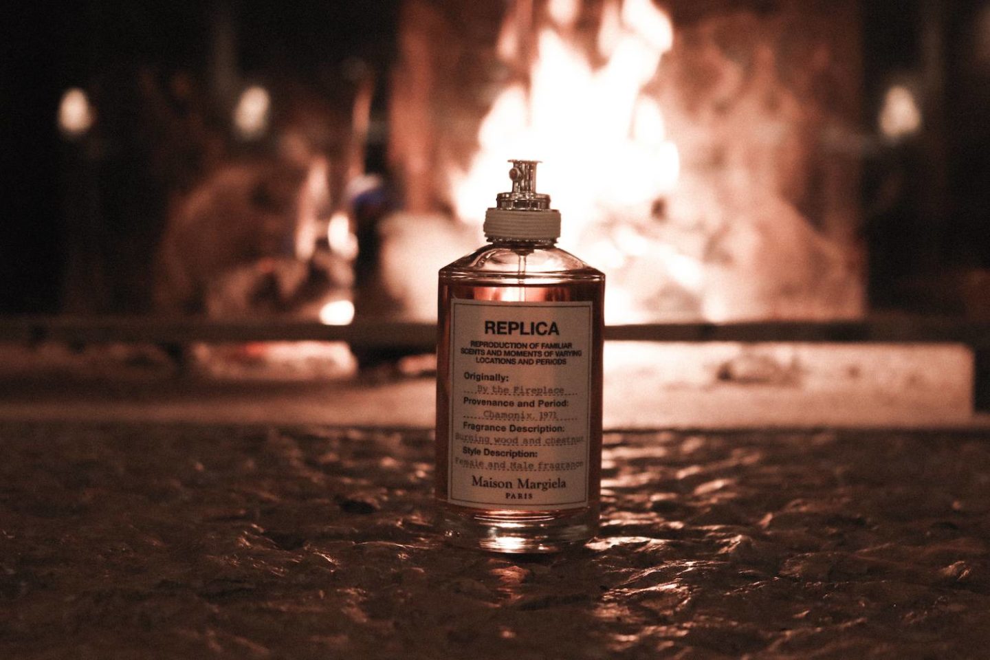 Replica By the Fireplace là một trong những mùi hương nổi bật thuộc dòng nước hoa Replica của thương hiệu Maison Margiela, ra mắt vào năm 2015. Lấy cảm hứng từ những buổi tối mùa đông ấm áp bên lò sưởi, hương thơm này mang lại cảm giác ấm áp, dễ chịu với mùi gỗ cháy, hạt dẻ nướng và vani ngọt ngào, tái hiện lại khoảnh khắc thư giãn trong không gian ấm cúng.