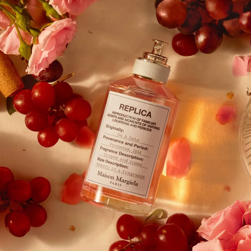 On a Date là dòng hương unisex mới thuộc bộ sưu tập Replica của Maison Margiela, ra mắt năm 2022. Hương thơm được lấy cảm hứng từ một buổi hẹn hò lãng mạn trong vườn nho Provence lúc hoàng hôn — nơi ánh sáng dịu và mùi nho chín hòa quyện cùng hoa hồng nở rộ. Chủ đích của hương thơm là gợi lên cảm giác thăng hoa của những rung động đầu tiên và nốt hương sâu lắng của sự quyến luyến.