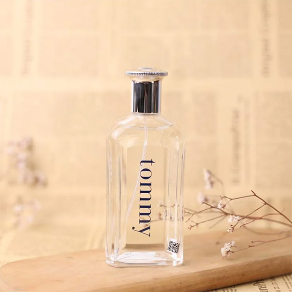 Chai nước hoa Tommy EDT có thiết kế đơn giản và thanh lịch với thân chai thủy tinh trong suốt, tên thương hiệu được in nổi bật, thể hiện phong cách “preppy” đặc trưng của Tommy Hilfiger – trẻ trung, cổ điển mà không kém phần hiện đại.
