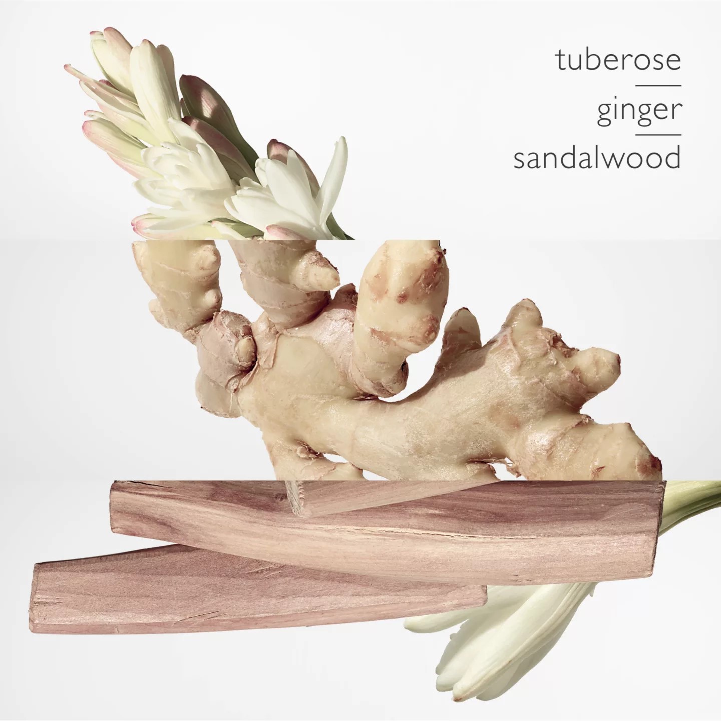 Tầng hương giữa mang đến sự quyến rũ, nữ tính và nhẹ nhàng của hoa huệ trắng, làm mềm mại và tinh tế hơn mùi hương tổng thể. - Hương cuối: Gỗ đàn hương